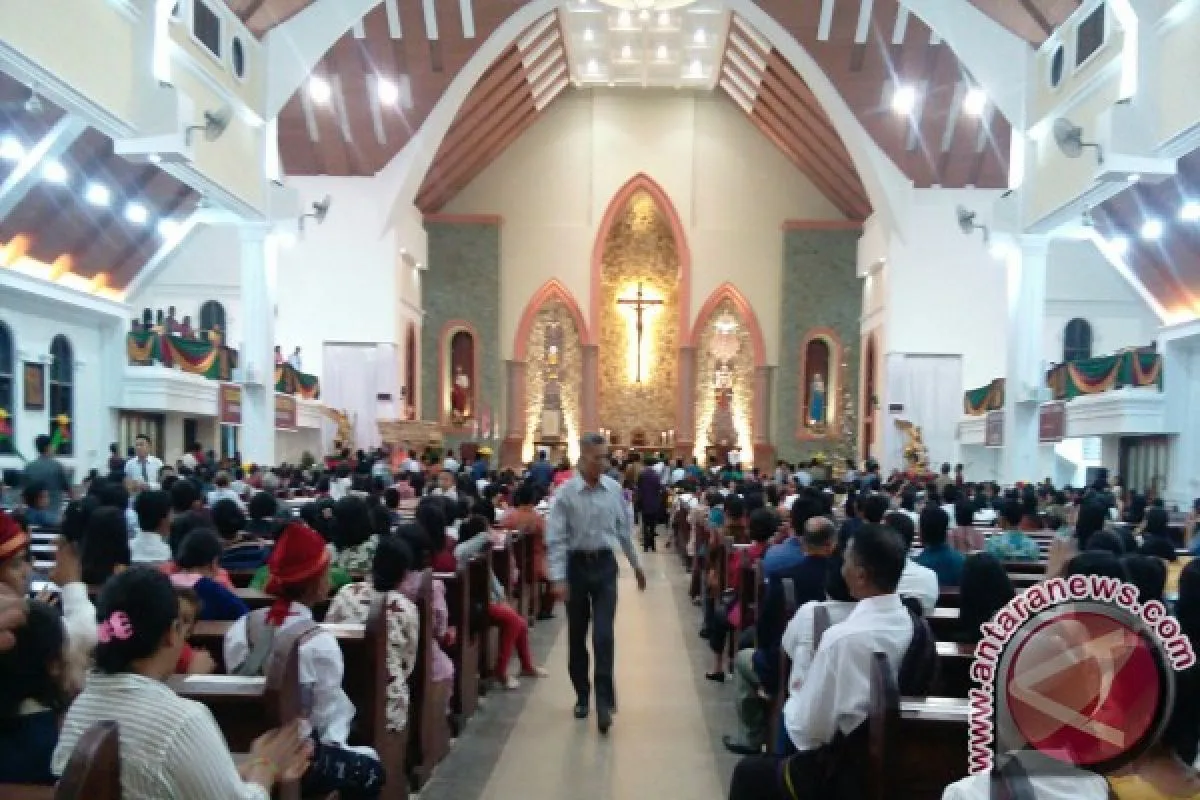 Peribadatan misa kudus malam Natal di gereja tersebut langsung dipimpin oleh Romo Petrus Santoso SCJ dari Palembang, Sumatera Selatan.