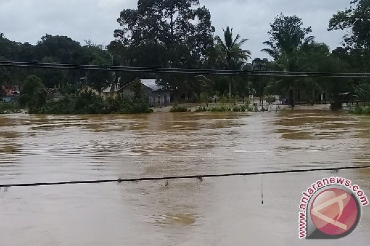 Jambi, Antarajambi.com - Sungai Batang Tebo di Kecamatan Tebo Tengah Kabupaten Muara Tebo meluap sehingga menggenang jalan raya dan rumah di sepanjang aliran itu, Senin.