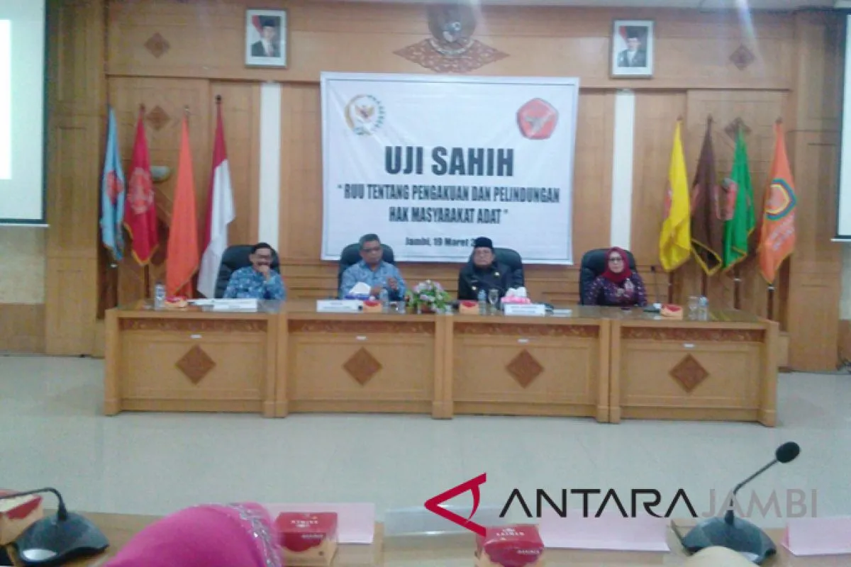 Jambi (Antaranews Jambi) - Komite I Dewan Perwakilan Daerah (DPD) RI melibatkan sejumlah akademisi dan praktisi di Jambi untuk menguji sahih terhadap Rancangan Undang-Undang (RUU) tentang Pengakuan dan Perlindungan Hak Masyarakat Adat di berbagai wilayah Indonesia.