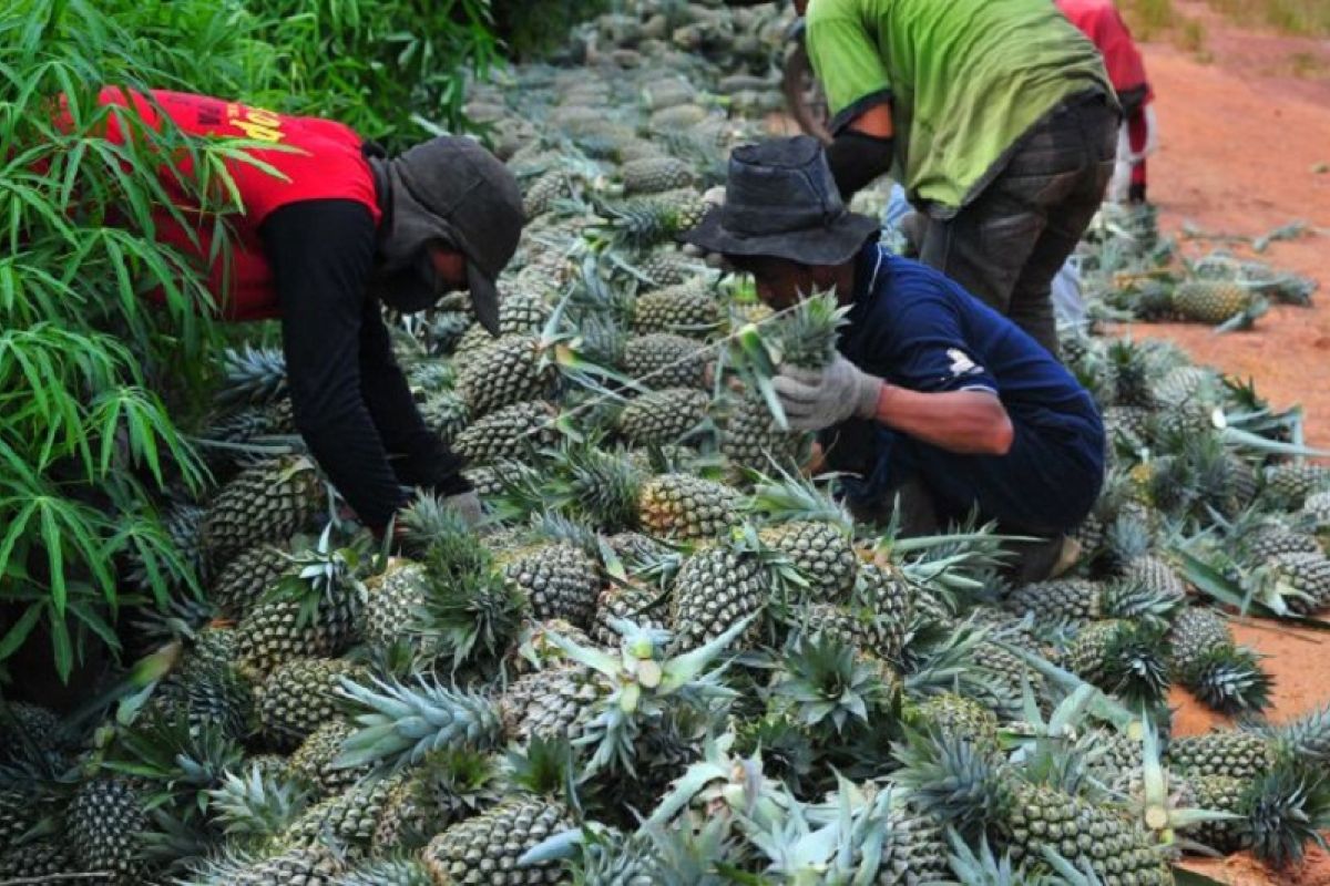Muarojambi (ANTARA) - Petani memanen buah nanas di Tangkit Baru, Sungai Gelam, Muarojambi, Jambi, Sabtu (16/5/2020). Menteri Pertanian Syahrul Yasin Limpo menyebutkan permintaan komoditas hortikultura, khususnya sayur dan buah segar meningkat selama pandemi, bahkan sejak pertama kali diumumkannya kasus infeksi COVID-19 pada awal Maret lalu. ANTARA FOTO/Wahdi Septiawan/wsj.