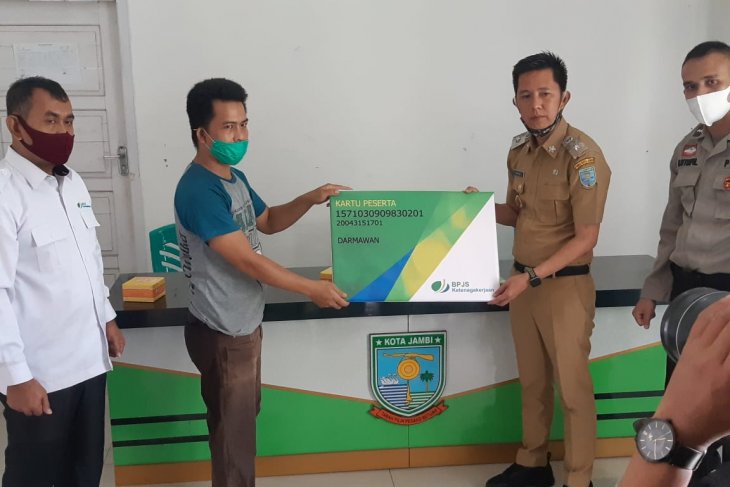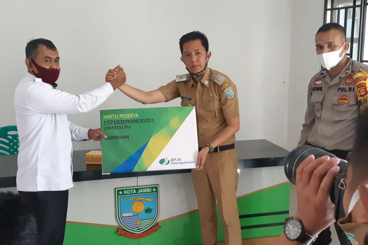 Jambi (ANTARA) - Badan Penyelenggara Jaminan Sosial Tenaga Kerja (BPJAMSOSTEK) Jambi menyerahkan kartu peserta kepada warga di kelurahan Budiman, Kota Jambi, Kamis (23/7).