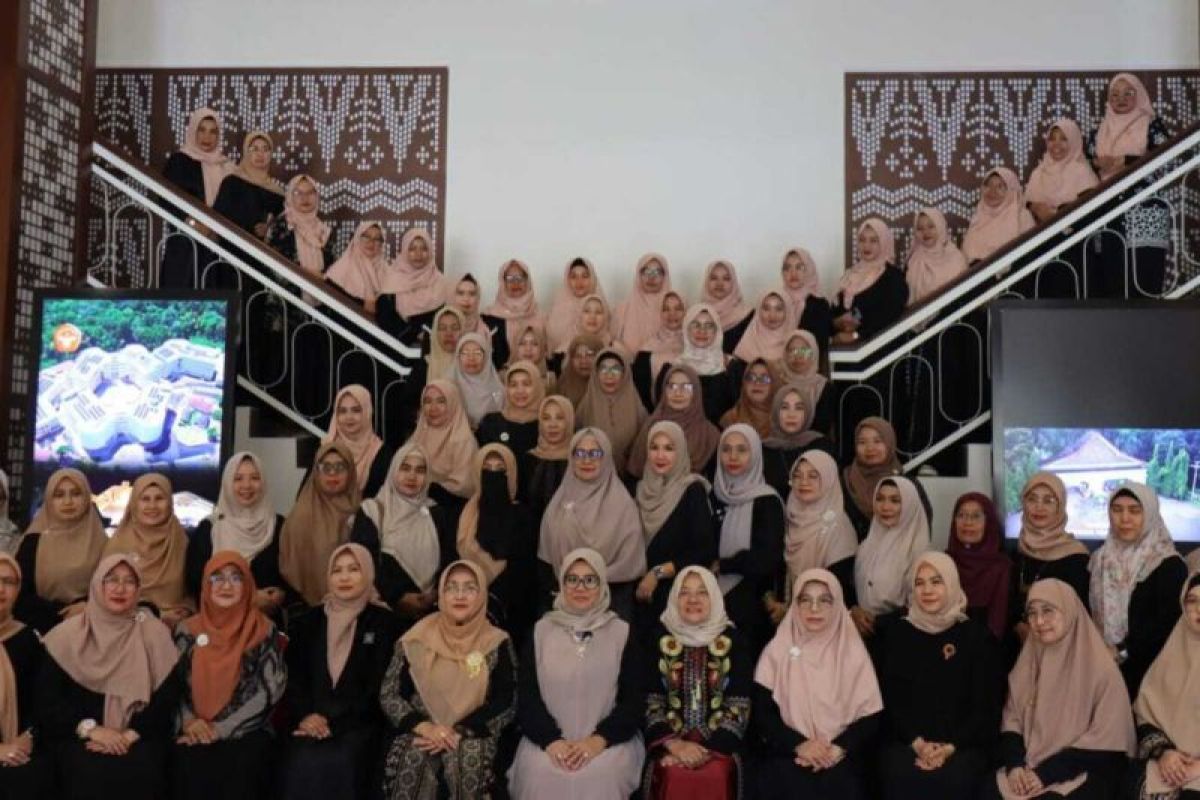 Ketua Dharma Wanita Persatuan (DWP) Universitas Jambi (UNJA) Ny. Ocy Nikhita Helmi resmi menutup kegiatan Bazar Ramadan tahun 1446 H. (ANTARA/HO/Humas Unja)