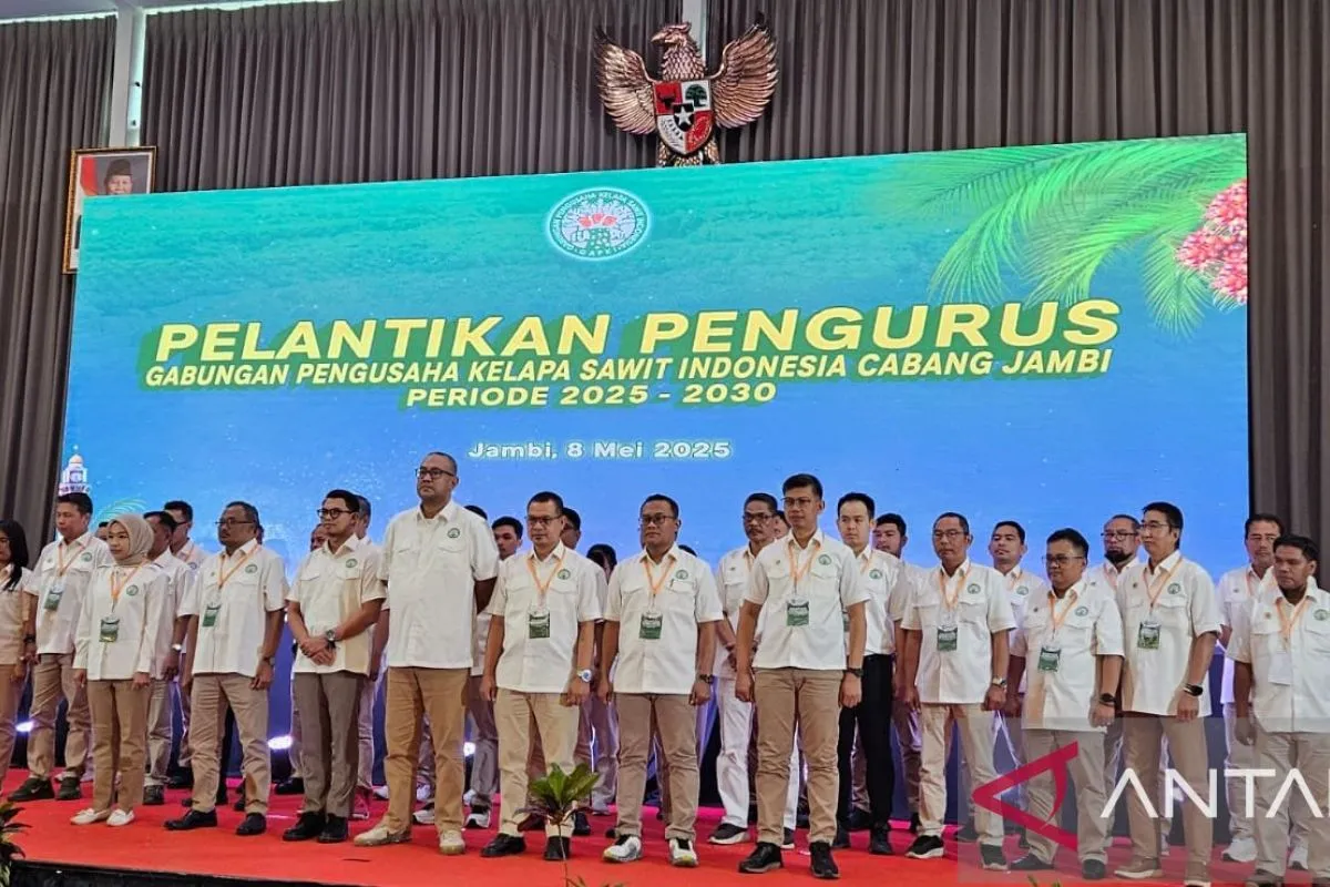 Jambi (ANTARA) - Ryan Harry Supryanto dari PT Brahma Bimabakti pimpin Gabungan Pengusaha Kelapa Sawit Indonesia (GAPKI) Cabang Jambi untuk periode 2025-2030 dengan mengusung tema untuk memajukan organisasi ini ‘Mendukung Program Perkebunan Kelapa Sawit Berkelanjutan’.