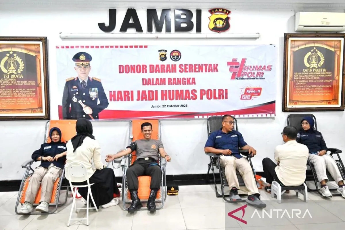 Jambi (ANTARA) - Dalam rangka memperingati hari jadi ke-74 Humas Polri tahun 2025, Bidang Humas Polda Jambi menggelar kegiatan bhakti kesehatan berupa donor darah bertajuk “Polisi Humanis Harapan Masyarakat”, yang berlangsung di Aula Rupatama Gedung B Polda Jambi, Rabu (22/10).
