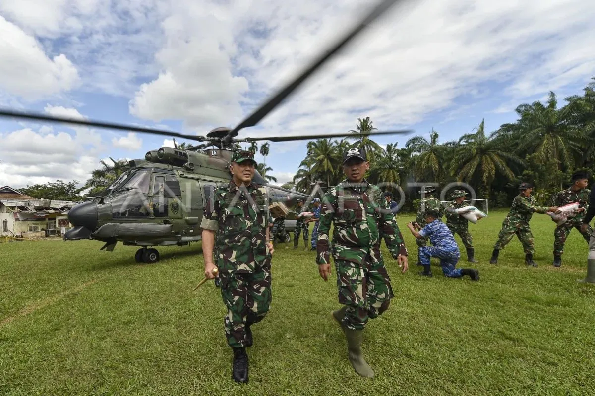 Pangdam XX/Tuanku Imam Bonjol Mayjen TNI Arief Gajah Mada (kiri) didampingi Dandim 0304/ Agam Letkol Inf Slamet Dwi Santoso (kanan) berjalan setibanya di Nagari Salareh Aia, Palembayan, Agam, Sumatera Barat, Selasa (2/12/2025). Kunjungan Pangdam yang disertai penyerahan bantuan ke kecamatan dengan 115 korban meninggal dan 76 korban hilang akibat banjir bandang tersebut bertujuan memastikan upaya percepatan pemulihan trauma, perbaikan infrastruktur, dan pencarian korban hilang pascabencana berjalan maksimal. ANTARA FOTO/Wahdi Septiawan/bar