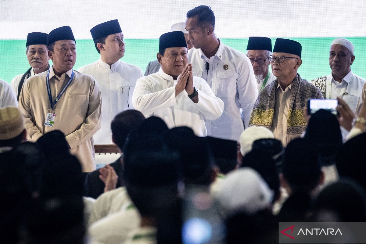 "Keselamatan bangsa hanya bisa kita hasilkan kalau kita bersatu, kita hilangkan curiga di antara kita, kita hilangkan perbedaan masa lalu, kita hilangkan rasa benci. Perbedaan adalah baik, persaingan adalah baik, tetapi setelah bersaing, mari kita bersatu, bersatu, bersatu dalam munajat, bersatu untuk keselamatan bangsa. Kita hormati semua, hormati semua umat, hormati semua kaum. Itulah contoh-contoh yang diberikan oleh ulama-ulama Indonesia," kata Presiden Prabowo.