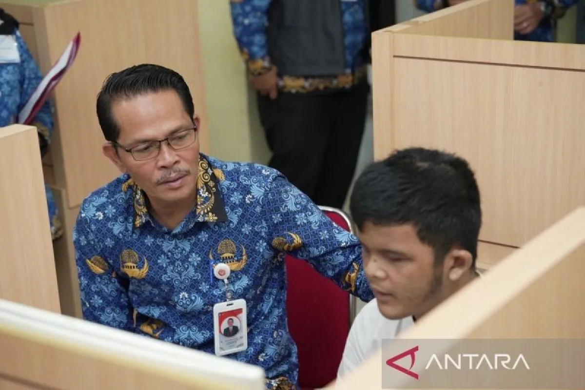 Salah satu peserta yang menarik perhatian adalah Muhammad Hafiyan Fuad, siswa dari SLBN Sri Soedewi, Jambi yang mengikuti ujian pada sesi pertama hari ketiga, Kamis (23/04/2026) di LAB UPATIK 1 UNJA Mendalo, dia didampingi Koordinator Kelulusan Siswa, Ika Noor Hidayati serta guru pendamping Ika Thalia Nisa.